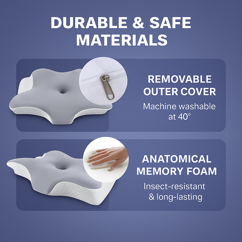 Unlike ordinary pillows, Nuvora Ergo Pillow has an ergonomic shape that supports your natural posture. It uses high-quality memory foam that adapts to your shape and a breathable cover that keeps you cool all night.